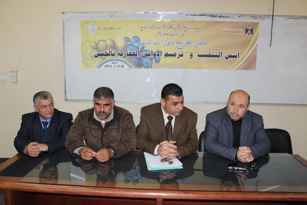 اختتمت وزارة السياحة والآثار بالتعاون مع كلية الآداب في الجامعة الإسلامية دورتين تدريبيتين في أسياسيات الحفريات وفي ترميم القطع الفخارية واستهدفتا طلاب قسم التاريخ والآثار بالجامعة الإسلامية.
